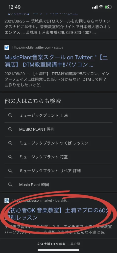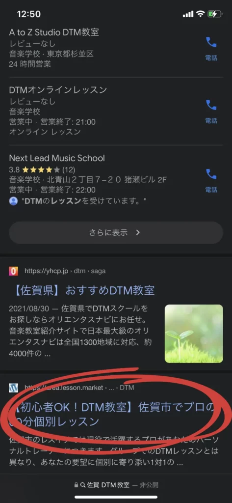「DTM講師登録しただけで本当に申し込みが入るの?」そんな疑問をお持ちのあなたに私たちの集客実績の一部をお見せします。下記の検索ワードで上位表示されたページにあなたのプロフィールが掲載されていたらどうでしょうか?集客できるイメージができるかと思います。※実際に登録していただく”レスイチ”というサービスの検索結果を掲載しています。また、検索時期により順位が変動している可能性があります。